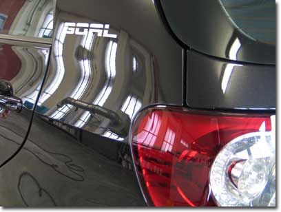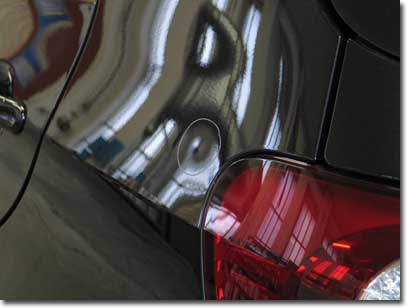 Auf den Fotos erkennen sie den Unterschied an einer hinteren Stoßstange wie die Beschädigung mit und ohne unseren Folienaufkleber aussieht.